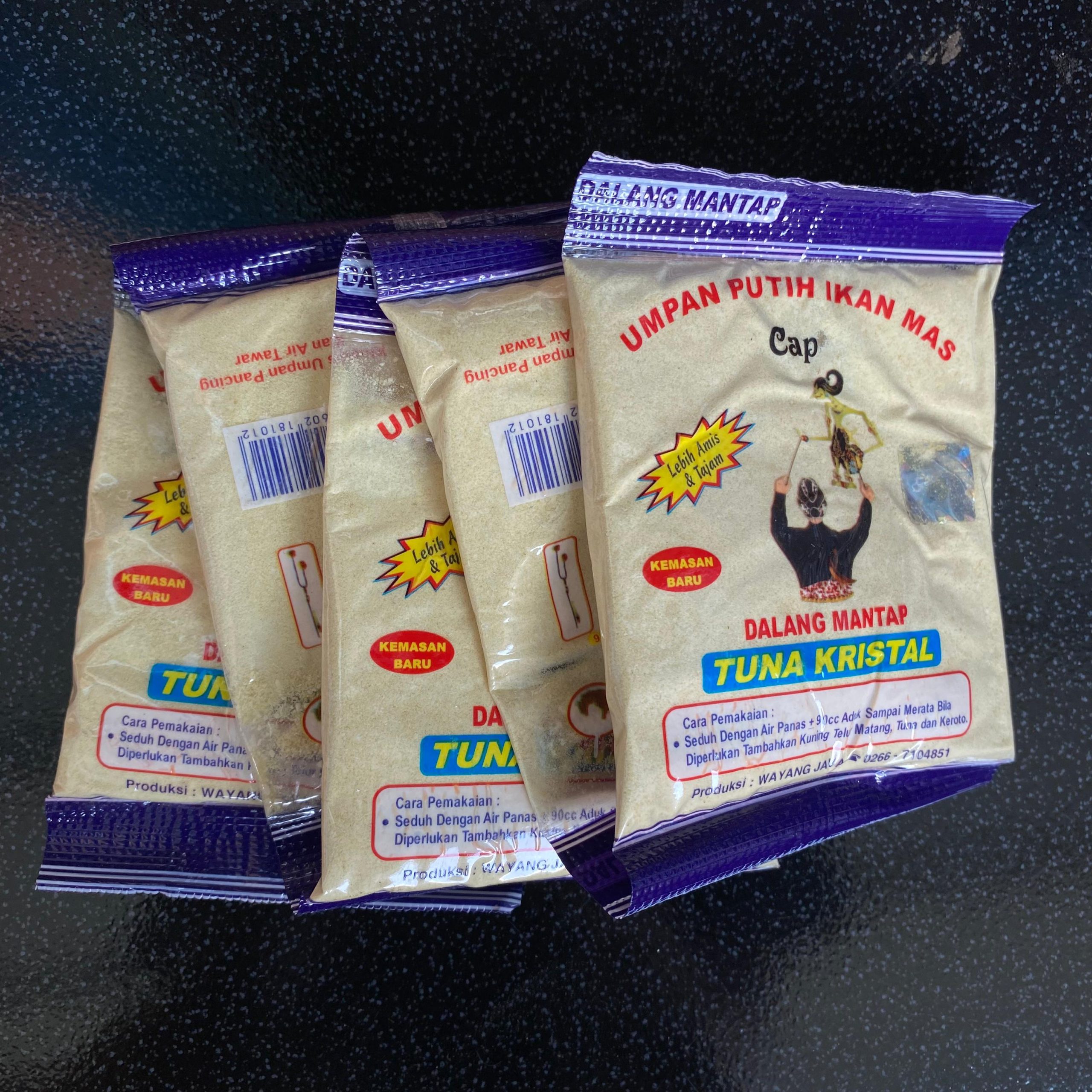 DALANG MANTAP dengan bangga menghadirkan **UMPAN TUNA KRISTAL 70gr**, umpan mancing berkualitas tinggi yang telah terbukti efektif untuk menangkap ikan mas dan berbagai jenis ikan air tawar lainnya. Diramu oleh para ahli umpan berpengalaman, umpan ini memadukan bahan-bahan terbaik dengan aroma khas tuna yang kuat untuk menarik perhatian ikan.